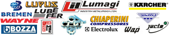 Compressores e lavadoras de alta e baixa pressão, medidor digital, mangueiras p/ graxa, ar comprimido, óleo lubrificante e para lava rápidos; carretéis, aferidor, coletor de óleo, bico de abastecimento, válvula de controle de graxa, conexões, acoplados hidráulicos, bico de limpeza, filtro e regulador de ar e acessórios em geral. |
